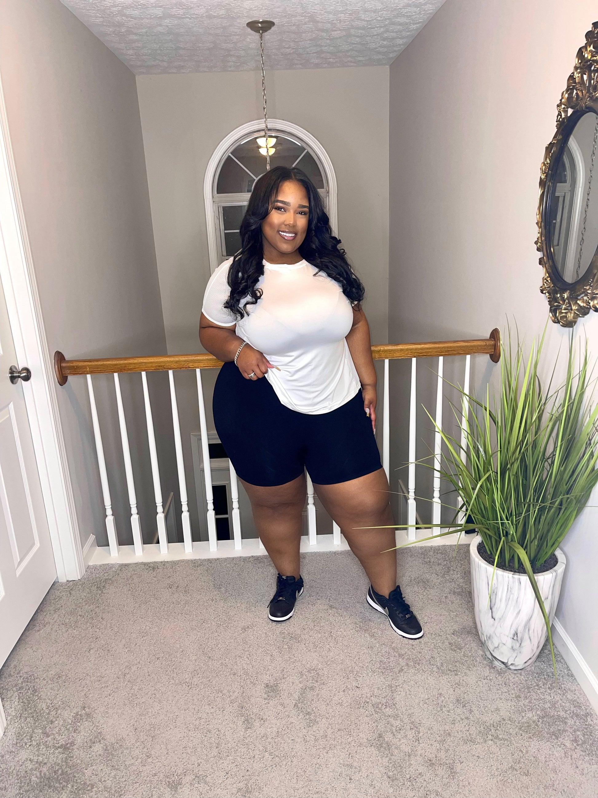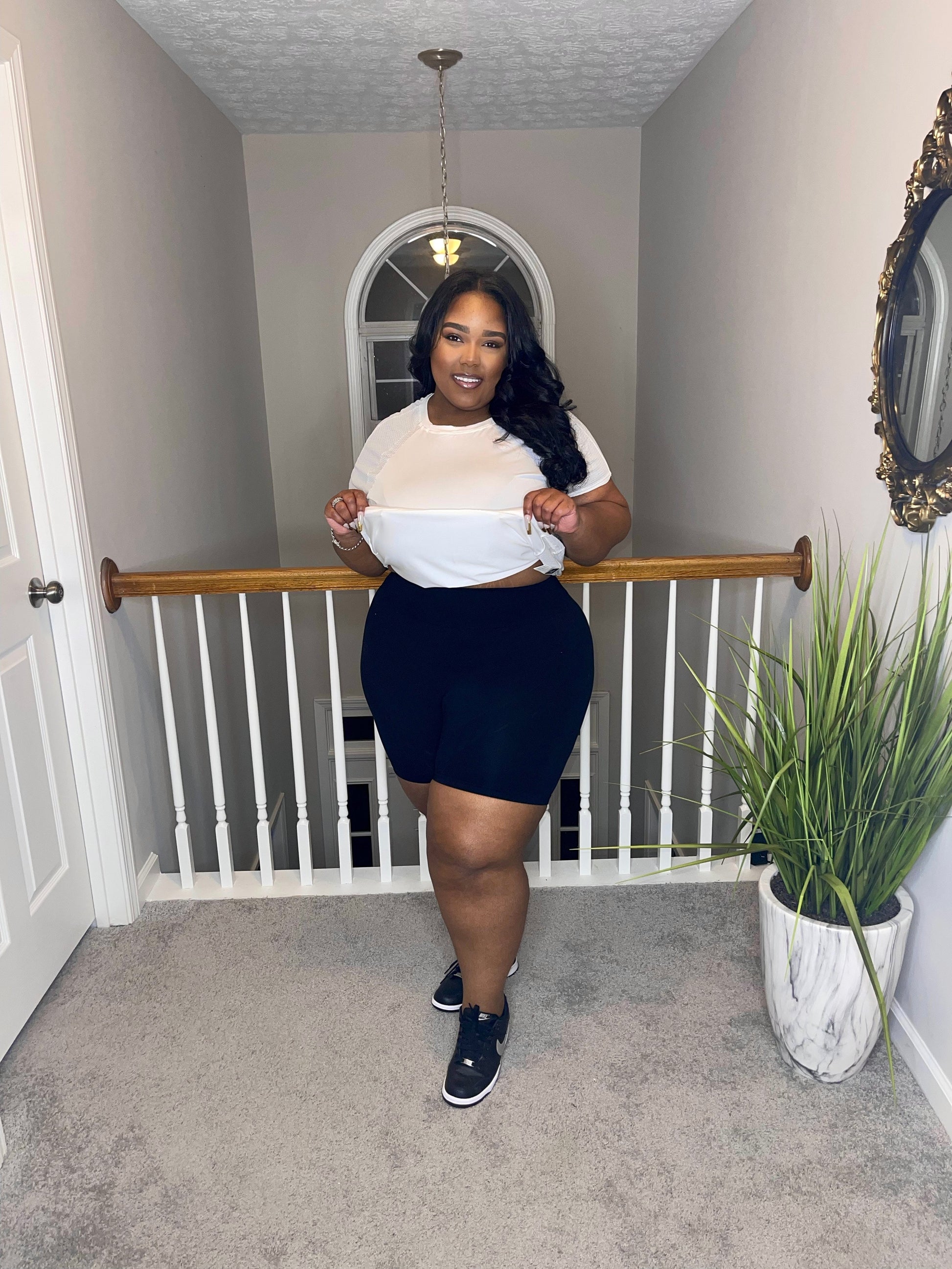 High waist Form fitting but super stretchy durable work out shorts. Will hold stomach in place and won’t rise while working out!