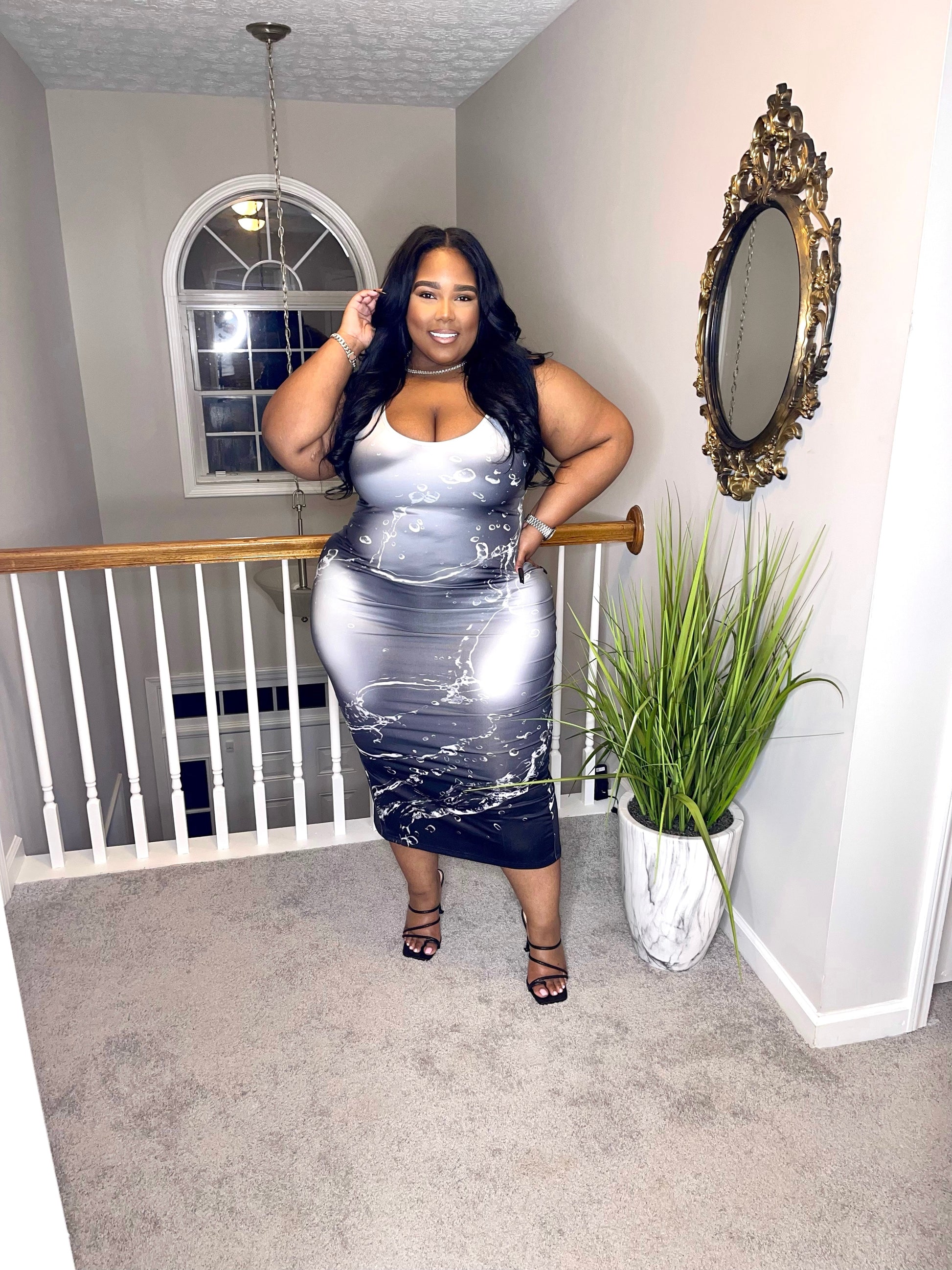 Bodycon maxi style, jersey material dress. Has great stretch and small split in back of the dress